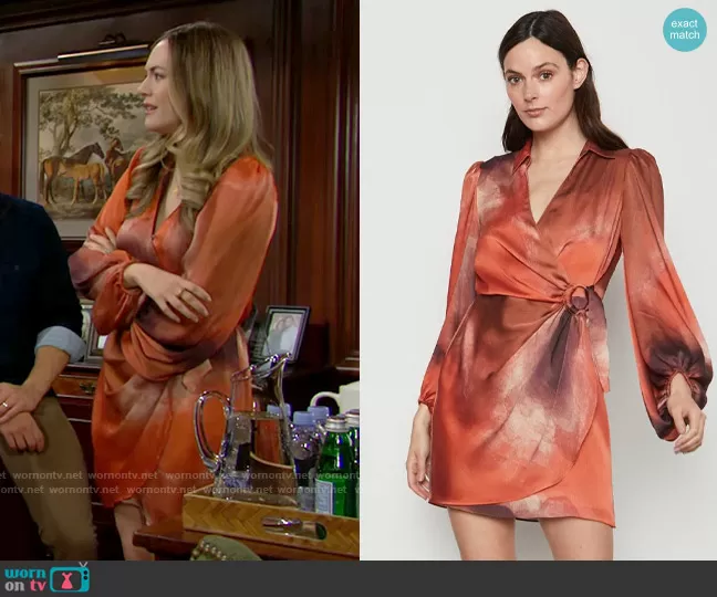 Hope Logan (played by Annika Noelle) on The Bold and the Beautiful on CBS was spotted wearing this orange wrap dress on The Bold and the Beautiful on Dec 09 2022's episode. Hope's Dress is the Saida Wrap Dress in Vibrant by Bailey 44 .