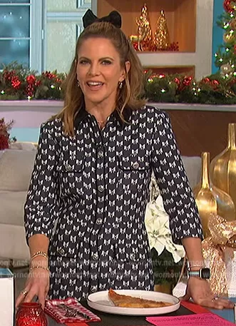 Natalie Morales on The Talk on CBS was spotted wearing this Natalie bow print shirt dress on The Talk on Dec 09 2022's episode. Natalie's Dress is the Bow Print Jacquard Dress by Maje.
