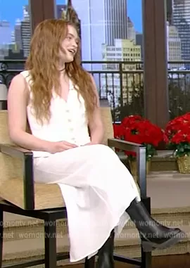 on Live with Kelly and Mark on Disney ABC Home Entertainment was spotted wearing this white button vest on Live with Kelly and Ryan on Dec 12 2022's episode. 's Vest is the Viscose and linen fluid twill waistcoat by Brunello Cucinelli.