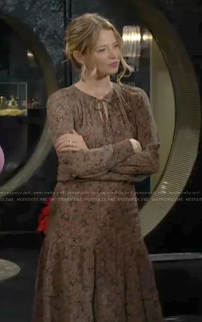 Summer Newman (played by Allison Lanier) on The Young and the Restless on CBS was spotted wearing this brown floral dress on The Young and the Restless on Dec 12 2022's episode. Summer's Dress is the Tunis Dress by Veronica Beard .