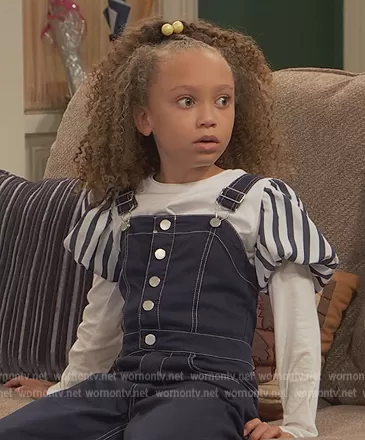 Alice Baxter (played by Mykal-Michelle Harris) on Ravens Home on Disney was spotted wearing this denim jumpsuit on Ravens Home on episode 'A Day Without Baxters' (5x23) in Nov 2022. Alice's Overalls is the Henley Wide Leg Jumpsuit by Habitual.