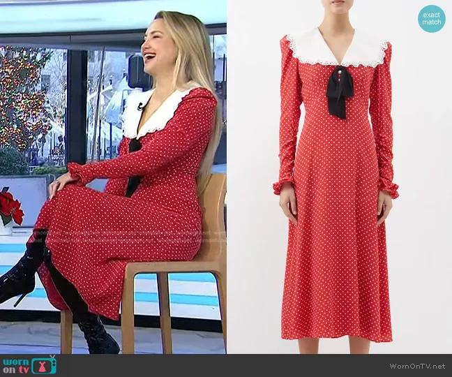 Alessandra Rich Oversized Collar Polka-Dot Silk Midi Dress worn by Kate Hudson on Today