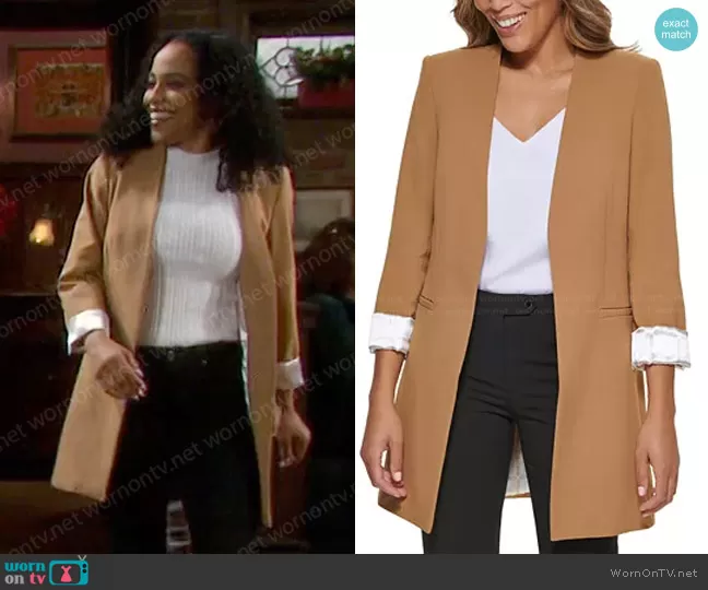 Calvin Klein Open-Front 3/4-Sleeve Blazer worn by Jada Hunter (Elia Cantu) on Days of our Lives