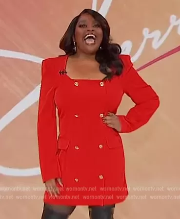 Sherri Shepherd on Sherri on FOX was spotted wearing this red double breasted dress on Sherri on Dec 16 2022's episode. Sherri's Dress is the Double Breasted Blazer Dress by River Island.