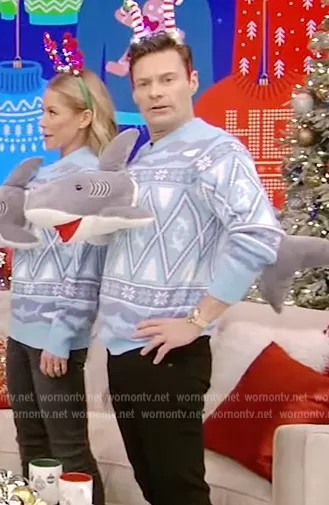 on Live with Kelly and Mark on Disney ABC Home Entertainment was spotted wearing this 3d shark Christmas sweater on Live with Kelly and Ryan on Dec 17 2022's episode. 's Sweater is the 3D Shark Plushie Ugly Christmas Sweater by Ugly Christmas Sweater.