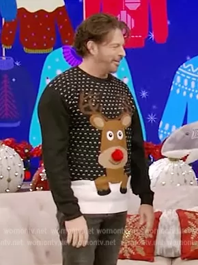 on Live with Kelly and Mark on Disney ABC Home Entertainment was spotted wearing this ugly Christmas sweater on Live with Kelly and Ryan on Dec 17 2022's episode. 's Sweater is the Holiday Reindeer Snowman Santa Snowflakes Sweater by Daisy Boutique.
