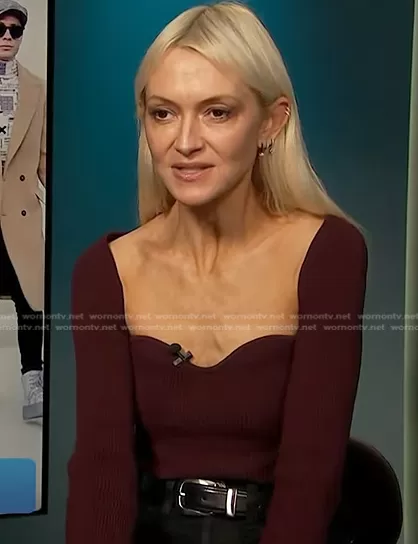 on Access Hollywood on NBC was spotted wearing this brown ribbed top on Access Hollywood on Dec 19 2022's episode. 's Sweater is the Maddy Sweater by Khaite.