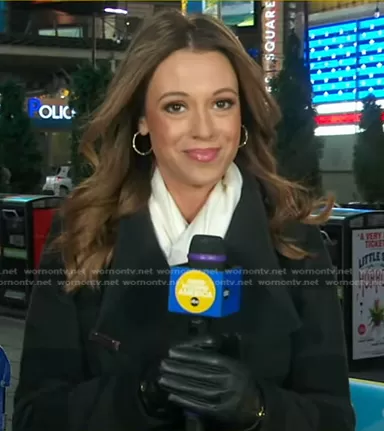 on Good Morning America on ABC was spotted wearing this black striped wrap coat on Good Morning America on Dec 21 2022's episode. 's Coat is the Narrla Coat by Ted Baker.