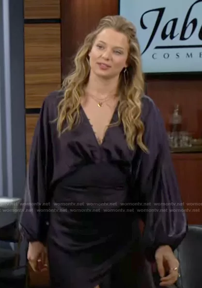 Summer Newman (played by Allison Lanier) on The Young and the Restless on CBS was spotted wearing this navy satin asymmetric dress on The Young and the Restless on Dec 20 2022's episode. Summer's Dress is the Jenna Dress by Elliatt .
