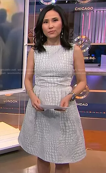 Vicky Nguyen on NBC News Daily on NBC was spotted wearing this white crocodile dress on NBC News Daily on Jun 01 2023's episode. Vicky's Dress is the Kaleen Dress by Ted Baker.