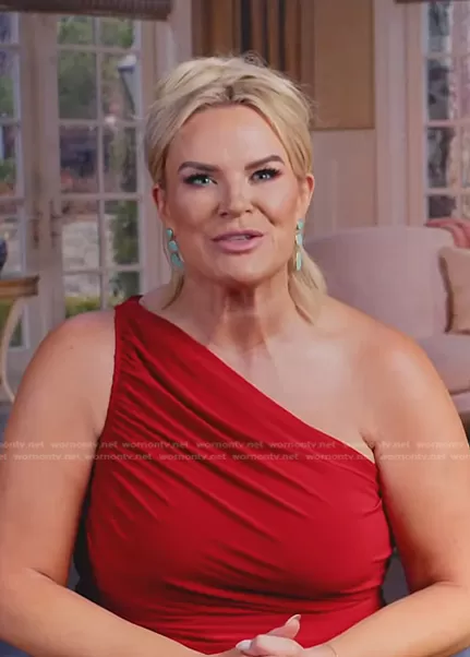 Heather Gay on The Real Housewives of Salt Lake City on Bravo was spotted wearing this red one-shoulder dress on The Real Housewives of Salt Lake City on episode 'White Lies and Black Eyes' (3x12) in Dec 2022. Heather's Dress is the Diana Asymmetric One-Shoulder Midi Dress by Norma Kamali.
