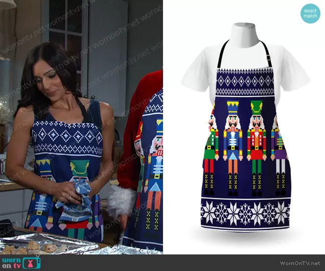 Gabi Hernandez (played by Camila Banus) on Days of our Lives on Peacock was spotted wearing this blue nutcracker print apron on Days of our Lives on Dec 23 2022's episode. Gabi (old)'s Apron is the Lunarable Nutcracker Apron at Amazon.