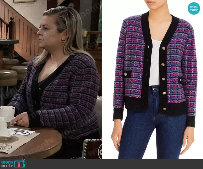 C by Bloomingdales Tweed Contrast Trim Cashmere Cardigan worn by Maxie Jones (Kirsten Storms) on General Hospital