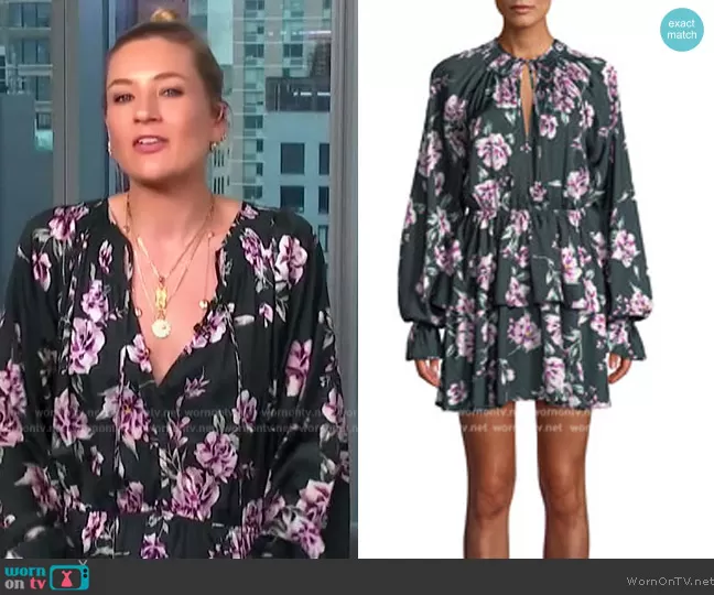 Tularosa Kenya Tiered Floral Long-Sleeve Mini Dress worn by Charlie Lankston on Extra