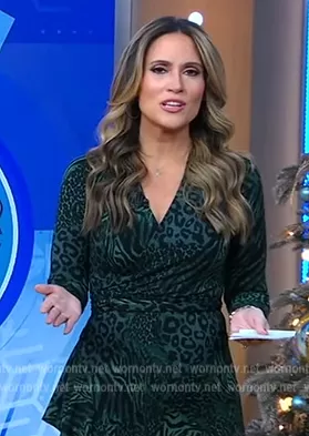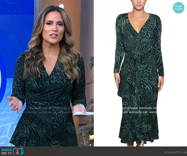 Rhiannon Ally on Good Morning America on ABC was spotted wearing this Rhiannon Ally’s green animal print wrap dress on Good Morning America on Dec 30 2022's episode. Rhiannon's Dress is the Paloma Dress by Rachel Roy.