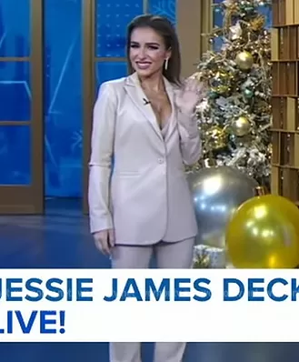 on Good Morning America on ABC was spotted wearing this beige leather blazer and pants on Good Morning America on Dec 30 2022's episode. 's Blazer is the Breann Vegan Leather Fitted Blazer by Alice + Olivia . 's Pants is the Teeny Vegan Leather Side Slit Pants by Alice + Olivia.