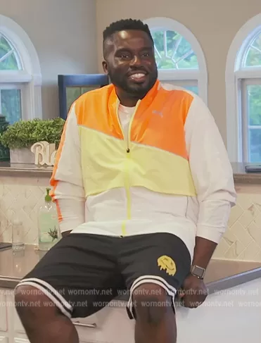 Edward Osefo on The Real Housewives of Potomac on Bravo was spotted wearing this colorblock jacket on The Real Housewives of Potomac on episode 'Mic Drop' (7x12) in Jan 2023. 's Jacket is the Ultra Run Jacket by Puma.