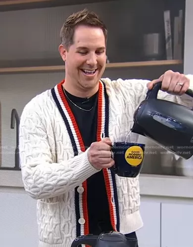 Sandro Cable Knit Cardigan worn by Anthony Underwood on Good Morning America