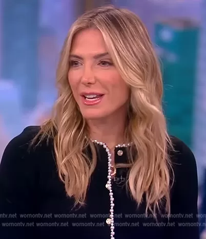 on The View on ABC was spotted wearing this pearl trim jacket on The View on Jan 03 2023's episode. 's Jacket is the Bead-embellished Cardigan by Sandro.