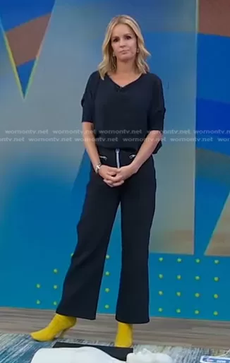 Dr. Jennifer Ashton on Good Morning America on ABC was spotted wearing this navy zip pants on Good Morning America on Jan 04 2023's episode. Jennifer's Pants is the Cropped Flare Zip Pants by Meryll Rogge . Jennifer's Shoes is the FFreedom Nubuck Leather Booties by Fendi.