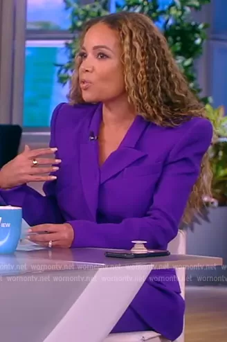 Sunny Hostin on The View on ABC was spotted wearing this purple belted blazer on The View on Oct 19 2023's episode. Sunny's Blazer is the Belted Blazer by Sergio Hudson.