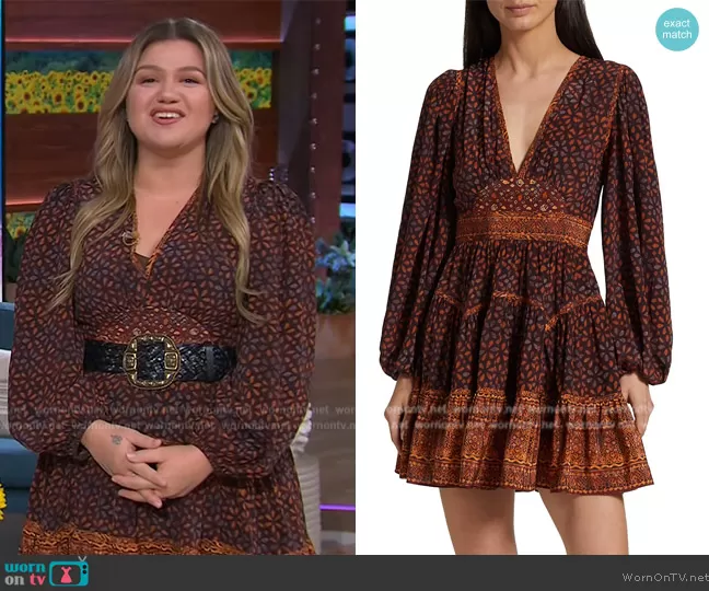 Ulla Johnson Hayana Floral Mix Print Long Sleeve Silk Dress worn by Kelly Clarkson on The Kelly Clarkson Show