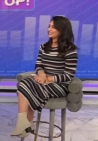 on Today on NBC was spotted wearing this striped dress on Today on Jan 04 2023's episode. 's Dress is the Striped Long Sleeve Ribbed Dress by Adam Lippes Collective.