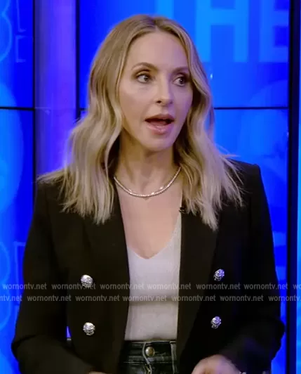on Live with Kelly and Mark on Disney ABC Home Entertainment was spotted wearing this black double breasted blazer on Live with Kelly and Ryan on Jan 05 2023's episode. 's Blazer is the Miller Dickey Jacket by Veronica Beard.