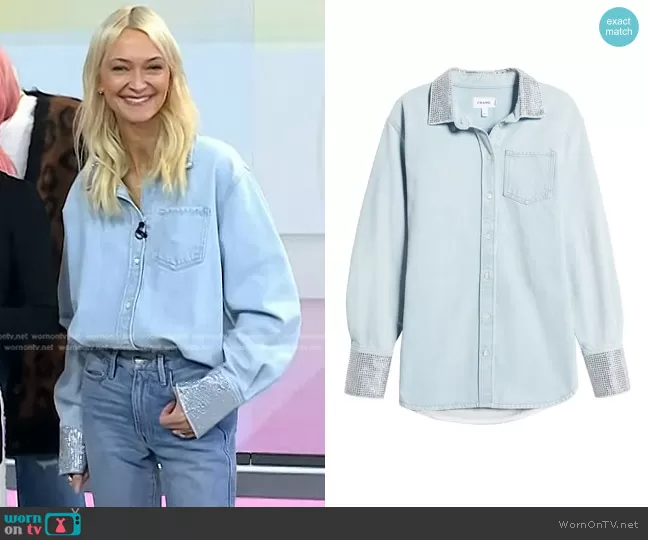 Top: Rhinestone Detail Cotton Denim Shirt by Frame