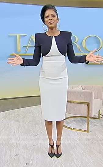 Tamron Hall on Tamron Hall Show on ABC was spotted wearing this colorblock midi dress on Tamron Hall Show on Jan 10 2023's episode. Tamron's Dress is the Spectator Colorblocked Dress by Sergio Hudson.
