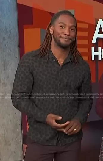 Scott Evans on Access Hollywood on NBC was spotted wearing this grey animal print shirt on Access Hollywood on Jan 10 2023's episode. Scott's Shirt is the Waka Shirt by All Saints.