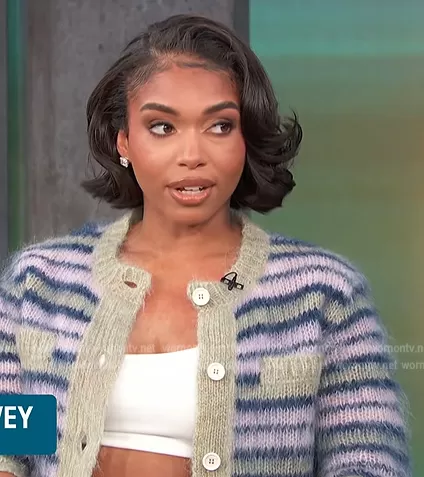 Marni Striped Crop Fuzzy Mohair Cardigan worn by Lori Harvey on Access Hollywood