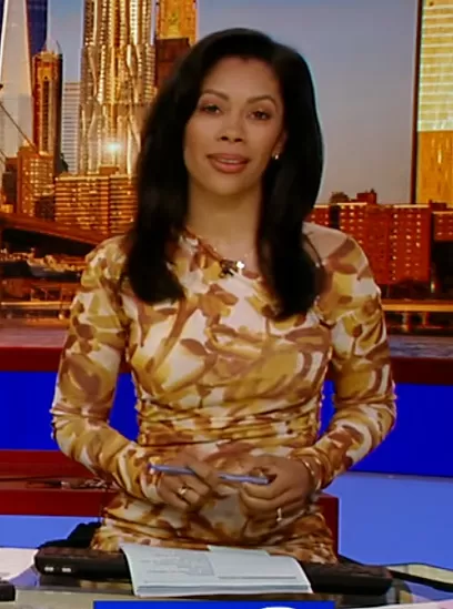 on Good Morning America on ABC was spotted wearing this floral asymmetric shoulder dress on Good Morning America on Jan 12 2023's episode. 's Dress is the Jasno One-Shoulder Long Sleeve Dress by Nanushka.