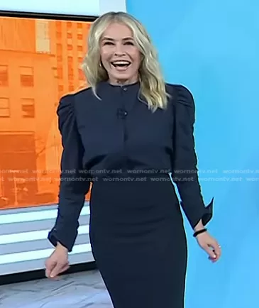 on Today on NBC was spotted wearing this navy ruched puff sleeve blouse on Today on Jan 13 2023's episode. 's Top is the Shirred Puff-Sleeve Blouse by Another Tomorrow.