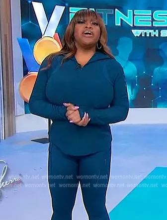 Sherri Shepherd on Sherri on FOX was spotted wearing this teal Nike top and leggings on Sherri on Jan 13 2023's episode. Sherri's Top is the Running Mid Layer by Nike . Sherri's Leggings is the Firm-Support High-Waisted 7/8 Leggings with Pockets by Nike.
