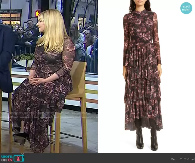 on Today on NBC was spotted wearing this black floral ruffle dress by Today on Jan 13 2023's episode. 's Dress is the Janeti Tiered Long Sleeve Dress by Ted Baker.