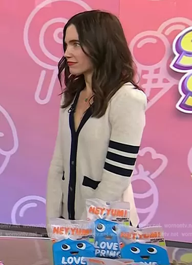 G. Label DiMatteo Puff-Sleeve Varsity Cardigan worn by Rachel Krupa on Today