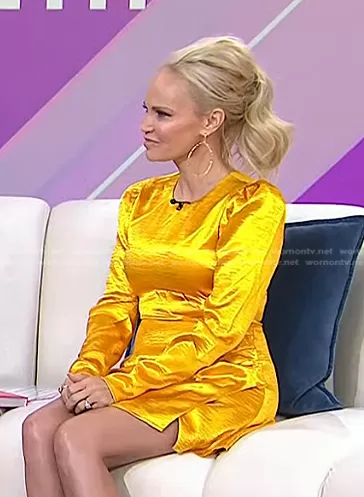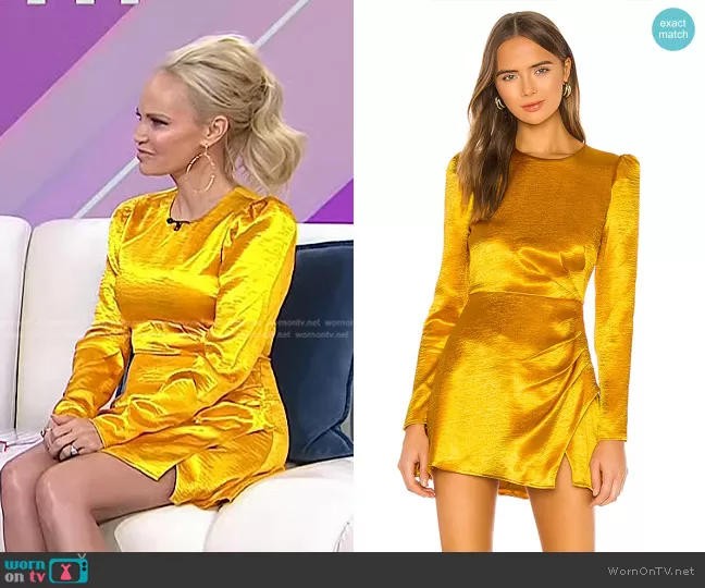 on Today on NBC was spotted wearing this yellow satin mini dress on Today on Jan 17 2023's episode. 's Dress is the Krisha Mini Dress by House of Harlow 1960 x REVOLVE.