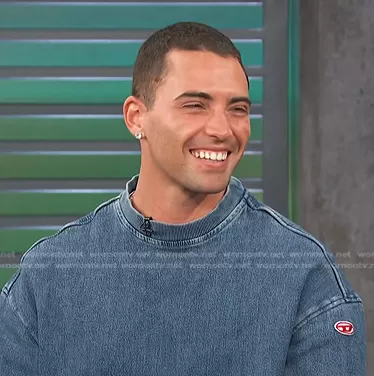 Diesel D-Krib Track Denim Sweatshirt worn by Benjamin Levy Aguilar on Access Hollywood