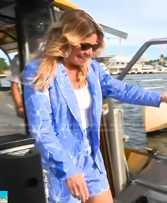 on Good Morning America on ABC was spotted wearing this blue floral blazer and shorts on Good Morning America on Jan 18 2023's episode. 's Jacket is the Avery Waterlily Linen Blazer by Milly . 's Shorts is the Casey Waterlily-Print Scallop Shorts by Milly.