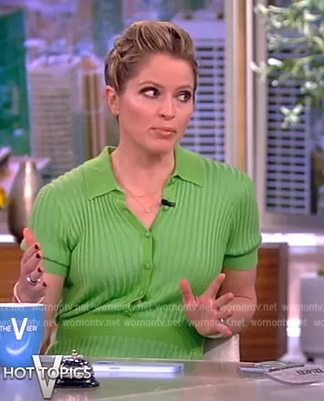 Sara Haines on The View on ABC was spotted wearing this green ribbed maxi dress on The View on Jan 18 2023's episode. Sara's Dress is the Amor ribbed cashmere and silk-blend maxi dress by Gabriela Hearst.