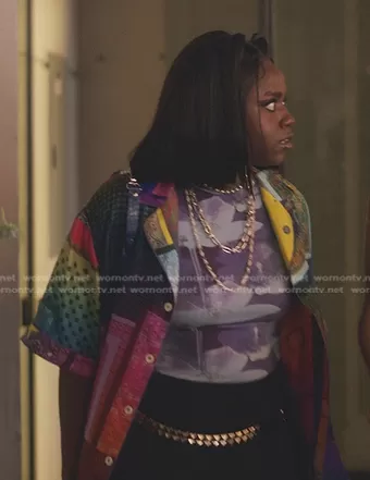 Shan (played by Grace Duah) on Gossip Girl on HBO Max was spotted wearing this multicolor print shirt on Gossip Girl on episode 'Y Lu's Mamá También' (2x08) in Jan 2023. 's Top is the Short Sleeve Shirt by Pierre-Louis Mascia.