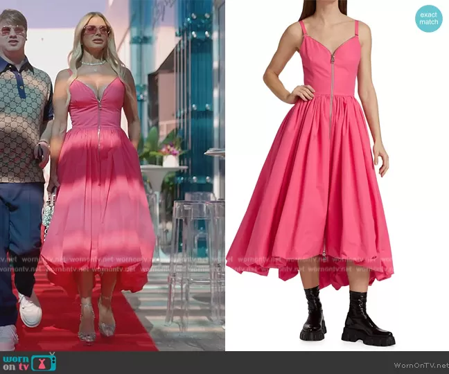 Alexia Echevarria (played by Alexia Echevarria) on The Real Housewives of Miami on Peacock was spotted wearing this pink zip front dress on The Real Housewives of Miami on episode 'Hot off the Press' (5x09) in Jan 2023. Alexia's Dress is the Zip-Up Fit & Flare Gown by Alexander McQueen . Alexia's Shoes is the Tequila Crystal-Embellished Metallic Leather Platform Sandals by Aquazzura.