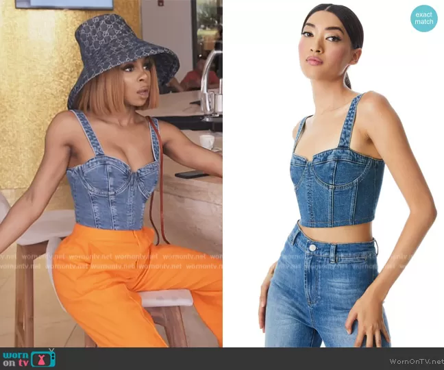 Top: Jeanna Denim Bustier Crop Top by Alice + Olivia