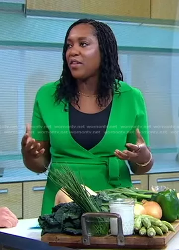 on Good Morning America on ABC was spotted wearing this green wrap dress on Good Morning America on Jan 23 2023's episode. 's Dress is the Della Dress by Diane von Furstenberg.