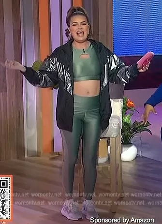 on Sherri on FOX was spotted wearing this metallic top and leggings on Sherri on Jan 23 2023's episode. 's Top is the Shiny Cut-Out Crop Top by Core 10 by Reebok . 's Leggings is the High-Rise Shiny Leggings by Core10 by Reebok.