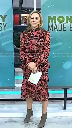 on Today on NBC was spotted wearing this pink floral ruffle dress on Today on Jan 23 2023's episode. 's Dress is the Isa Ruffle Dress in Laurel by Saloni.