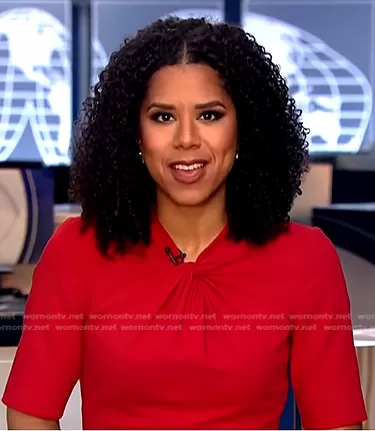 on CBS Evening News on CBS was spotted wearing this Adriana Diaz’s red twist neck dress on CBS Evening News on Jan 23 2023's episode. 's Dress is the Caterina Dress by LK Bennett.