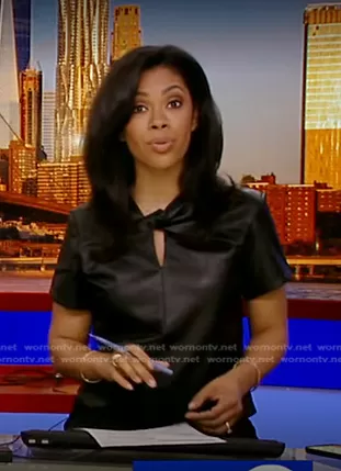 on Good Morning America on ABC was spotted wearing this black leather top on Good Morning America on Jan 25 2023's episode. 's Top is the Faux Leather Top by Proenza Schouler White Label.