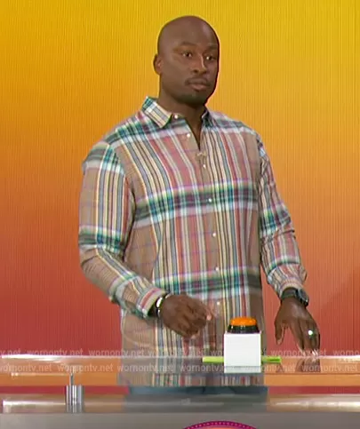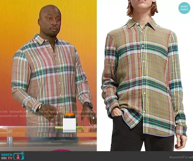 Akbar Gbajabiamila on The Talk on CBS was spotted wearing this plaid button down shirt on The Talk on Jan 26 2023's episode. Akbar's Shirt is the Lightweight Check Flannel Sport Shirt by Scotch and Soda.